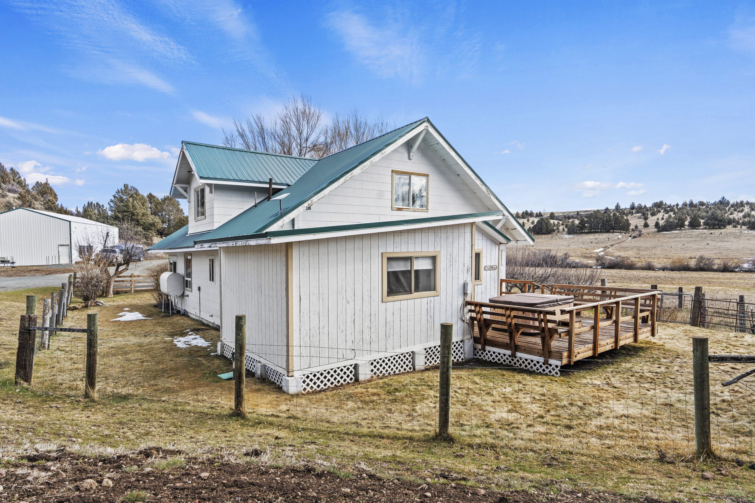 The main residence is a charming 4-bedroom, 2-bath farmhouse, offering the perfect blend of rustic comfort and modern functionality. A wood stove keeps the interior cozy during the cooler months, while a hot tub on the back deck provides a quiet place to relax and enjoy the sweeping views.